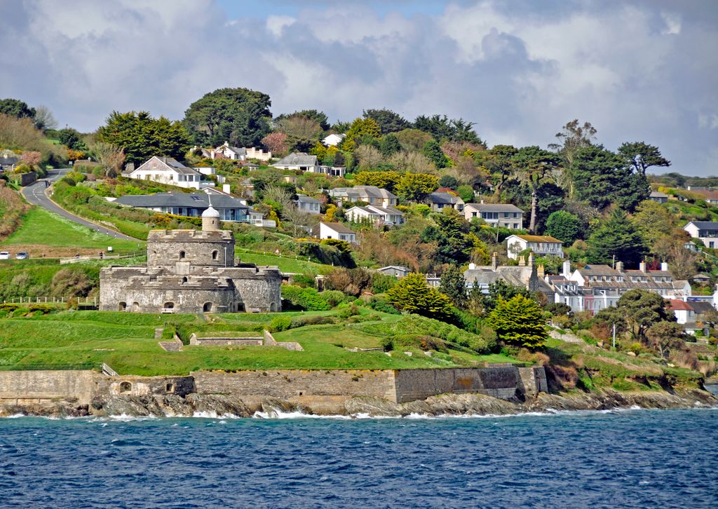 Burgen, getrennt durch eine Meeresenge. Kleine Fähren verkehren regelmäßig zwischen den Orten Falmouth und