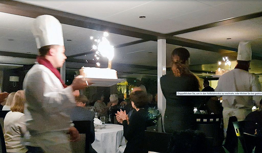 Der Höhepunkt war wie immer die Traumschiff-Parade, auf die keine Kreuzfahrt verzichtet. Nur schmeckt die Torte auffällig immer gleich auf allen Schiffen, und mir zu süß. Ich befürchte, dass diese beim gleichen Hersteller gekauft wird. Das kann ich natürlich nicht auf alle übertragen, und es kann auf der MS Provence natürlich nicht so sein:
