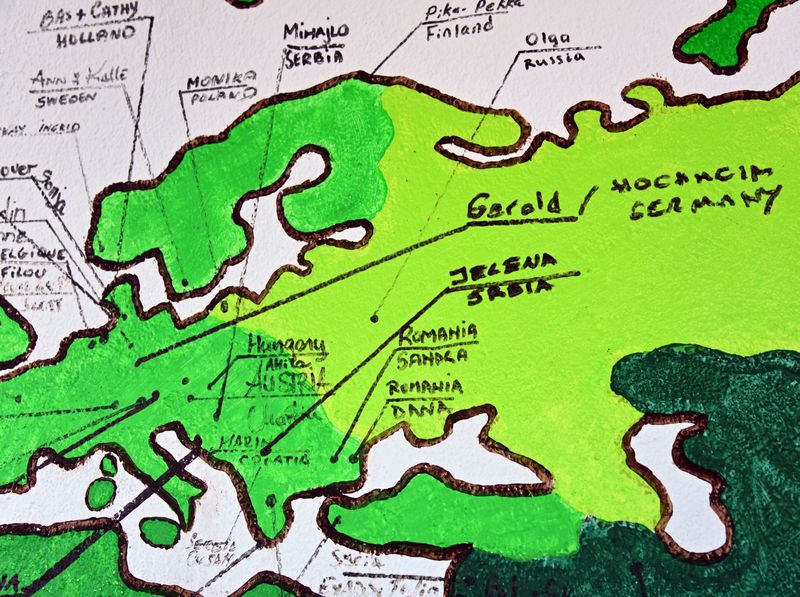 verewigt man sich noch auf einer Weltkarte, auf der eigenartig Grönland fehlt.