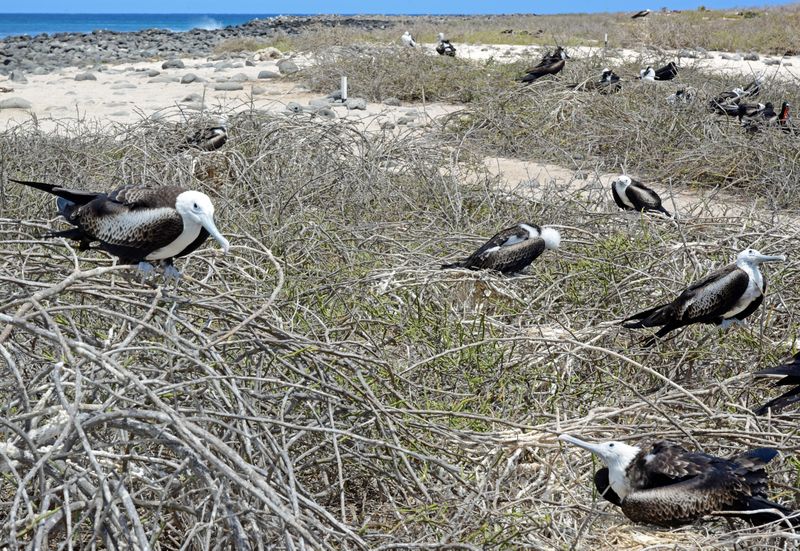 nur viele Fregattvögeln, Blaufußtölpeln, Landleguanen und Seehunde. Die vielen