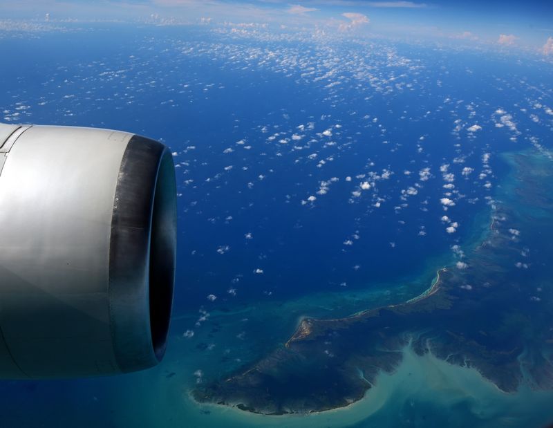 Den Flug verbrachte ich zur Hälfte mit dem Schreiben dieses Berichts und die andere mit Ausblicke auf karibische