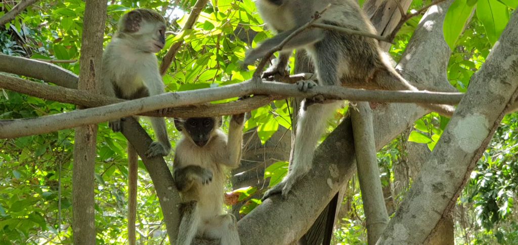 In der Anlage, die auch unter dem Namen „Monkey Park“ bekannt ist, haben Meerkatzen sowie Stummel- und Husarenaffen ihr Zuhause. Beide Arten hatten wir problemlos ohne Führer finden und beobachten können: