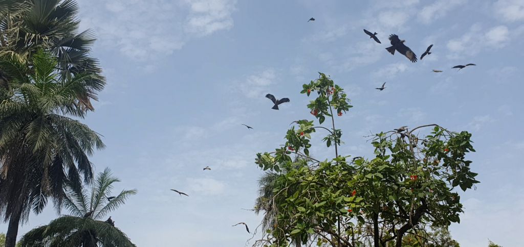 Video von fliegenden Geiern im Senegambia Beach Hotel, sechs Sekunden Laufzeit