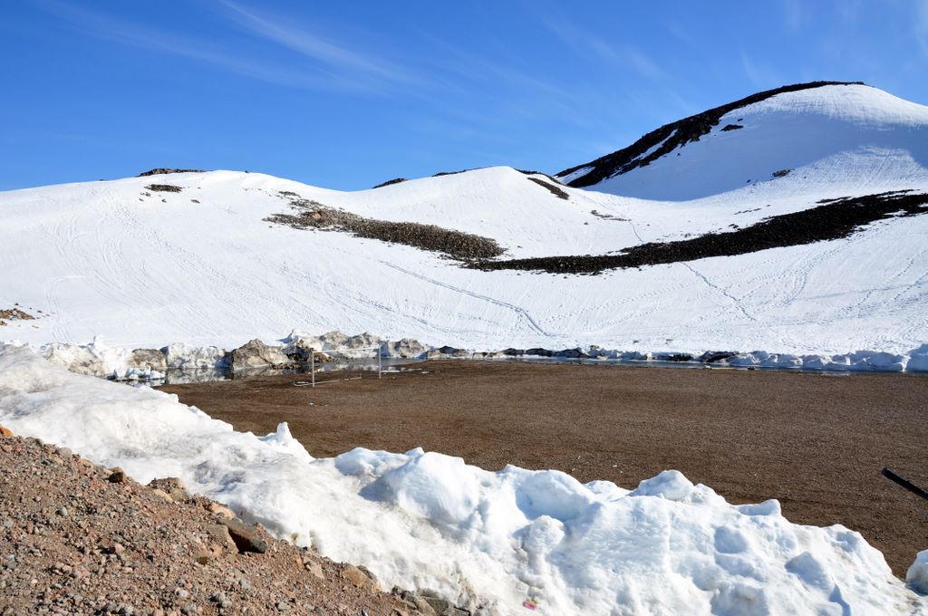 Der Fußballplatz war von einem fleißigen Räumkommando frei vom Eis: