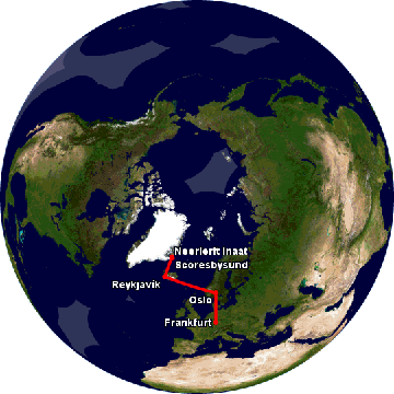 und die Flüge jeweils über Oslo und Island jeweils mit Übernachtungen für Ende Mai 2011 gebucht.
