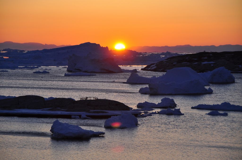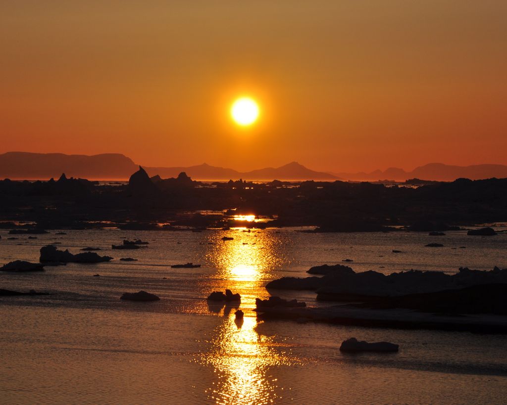 Sonnenuntergang um kurz vor Zwölf (24:00) in Ilulissat