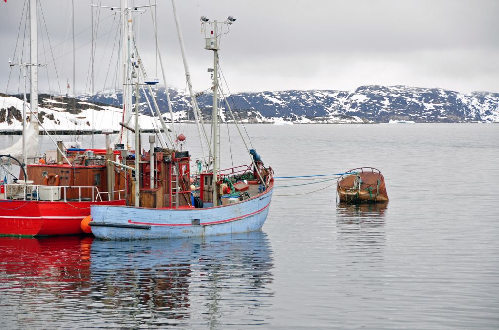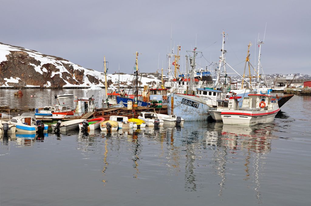 Boote warten auf den ersten Fang im Jahr in Aasiaat