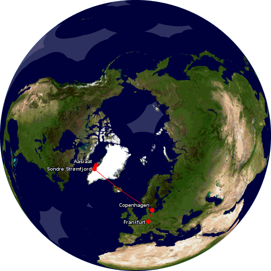 Flug nach Grönland ging so früh, dass kein Anschluss am selben Tag von Frankfurt aus möglich war.