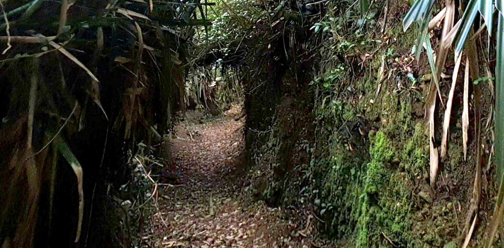 Video von einem Lauf durch einen Graben in der Festung Agüi in Chiloé, zwanzig Sekunden Laufzeit
