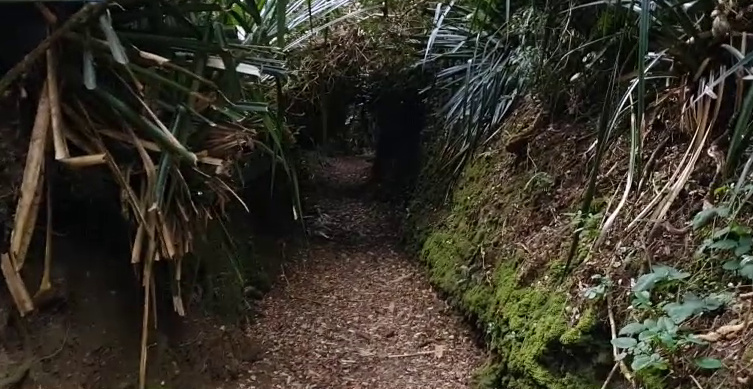 Video von einem Lauf durch einen Graben in der Festung Agüi in Chiloé, achtzehn Sekunden Laufzeit