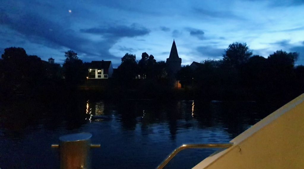 Am nächsten Morgen erreichten wir nach siebzig Fluss-Kilometern von Frankfurt am Main aus Wertheim, die nördlichste Stadt von Baden-Württemberg. Der Main spiegelte sich herrlich im Wasser beim Blick auf Kreuzwertheim, das zu Bayern gehört: