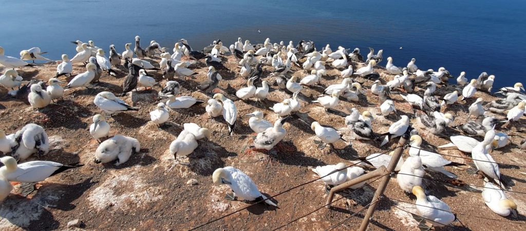 Auf Helgoland angekommen liefen wir zum „Lummenfelsen“, Deutschlands kleinsten Natur- und Vogelschutzgebiet. Ich garantiere, dass diese Bilder die besten sind, die ich im Jahr 2020 auf Helgoland von Basstölpel aufgenommen habe. Bitte die Bilder ohne ein Gelaber von mir genießen. Sie sind inflationär, aber mir hatte es gefallen dort, und konnte nicht genug davon sehen: