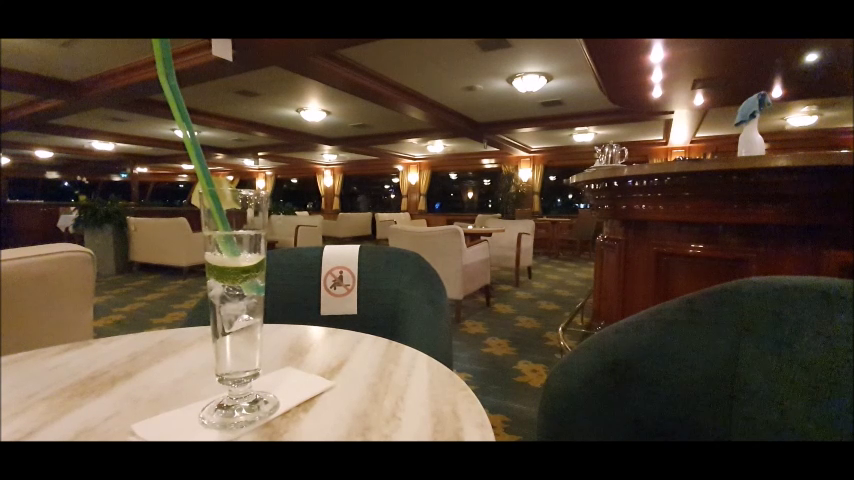 Nach dem wie gewohnt guten Abendessen hatten zwei Passagiere und ich noch Appetit auf eine Pizza. Unerklärlich, zumindest für mich „Wenig-Esser“. Leider hatten die Gaststätten bereits geschlossen, und dies zu einer Zeit, in der manche im Süden von Europa erst öffnen. Uns blieb nur „Pizza-los in der Nacht“ ein Schlummer-Drink in einer Bar:
