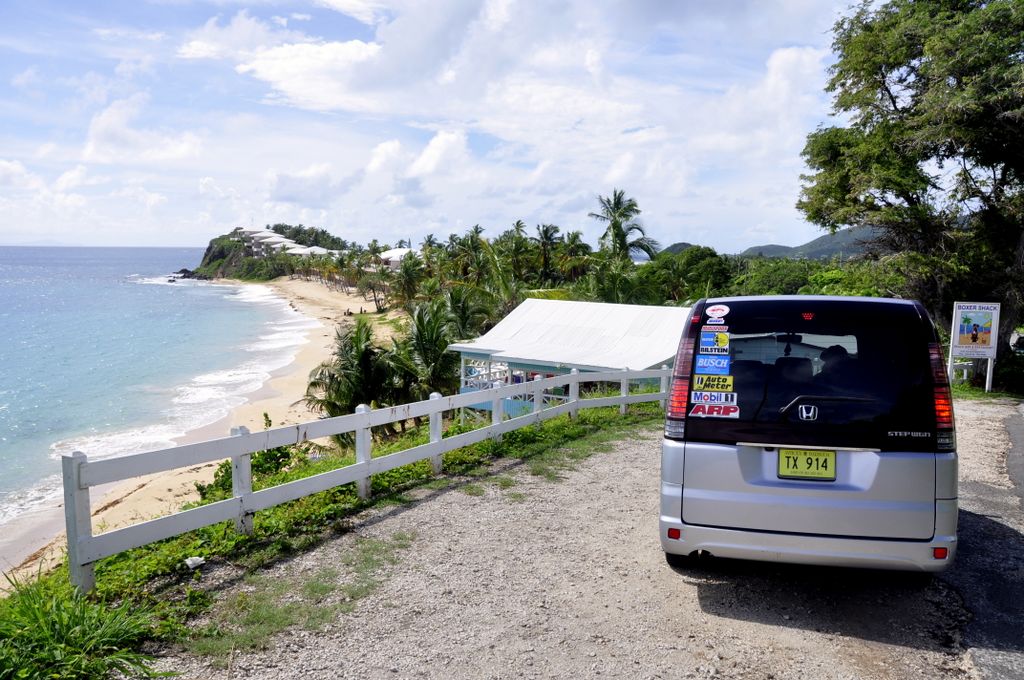 Fahrt rund um die Insel. Der kleine Bus war nur zur Hälfte besetzt und ich saß neben dem Fahrer, so
