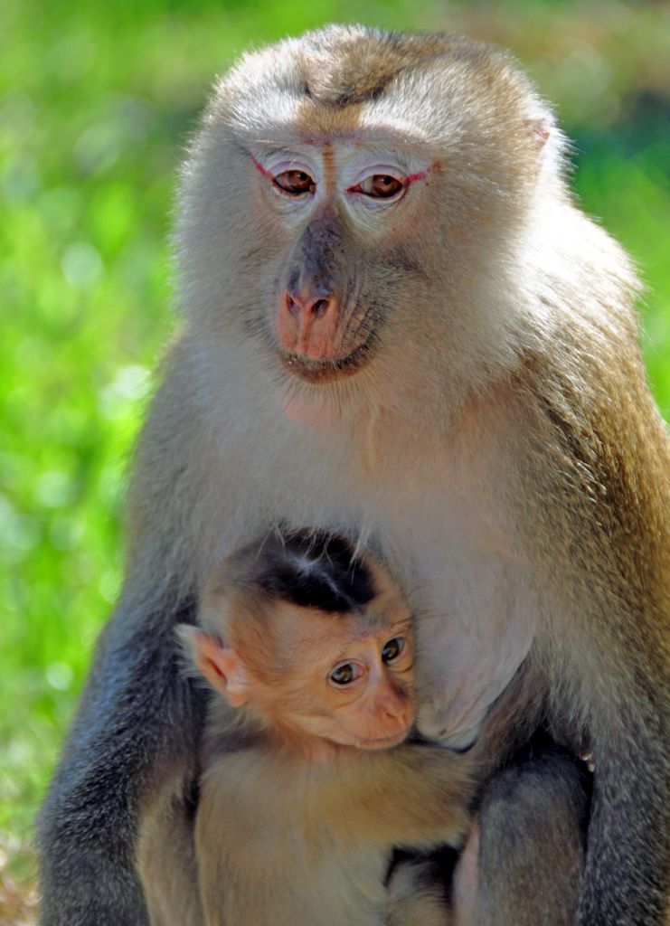 Makaken-Mami und Makaken-Baby im Nationalpark Khao Yai
