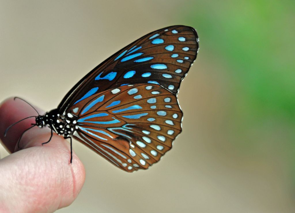 Ein schöner Schmetterling sucht Kontakt im Nationalpark Khao Yai