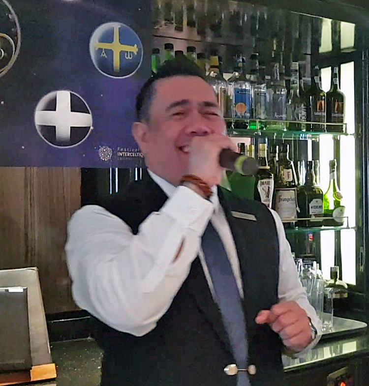 Wo ein Kellner uns musikalisch perfekt unterhalten hatte. Ich hoffe, dieses Video kann es herüberbringen: